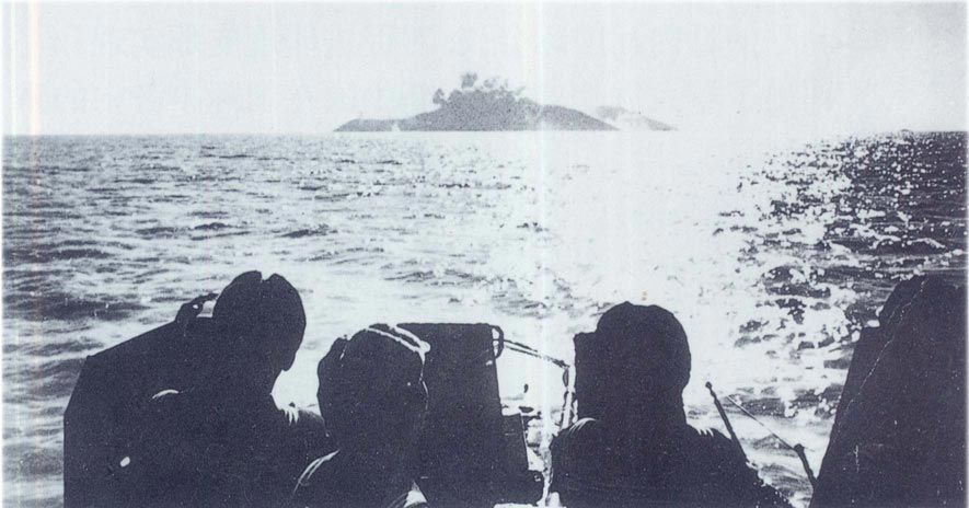 1955年1月18日至19日,中國人民解放軍海陸空三軍協(xié)同作戰(zhàn),一舉解放一江山島。圖為在海軍、空軍的掩護(hù)下,登陸艦隊(duì)迅速靠近登陸點(diǎn)。