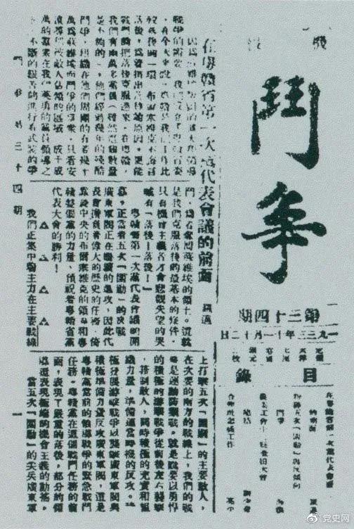 1933年11月5日,劉少奇主持中央蘇區(qū)農(nóng)業(yè)工會十二縣查田大會,并作總結報告。圖為《斗爭》第34期刊登的目錄。