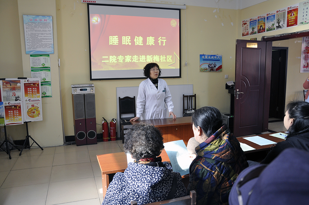 世界睡眠日到來之前,呼吸二科的田靜主任于3月14日率領(lǐng)科室醫(yī)護(hù)人員9人,到新梅社區(qū)為居民進(jìn)行健康睡眠科普知識(shí)講座。講座結(jié)束后,現(xiàn)場(chǎng)為居民們進(jìn)行了測(cè)量血糖、血壓等常規(guī)身體檢查,面對(duì)面解答各種問題,指導(dǎo)他們科學(xué)合理用藥。此次活動(dòng)讓居民了解睡眠異常發(fā)生的臨床癥狀,長(zhǎng)期患睡眠障礙的危害及如何克服睡眠障礙等睡眠知識(shí),引導(dǎo)大家規(guī)律作息,重視健康睡眠,受到了居民的一致稱贊。3月21日世界睡眠日宣傳當(dāng)日上午,田靜主任再次率領(lǐng)科室醫(yī)護(hù)人員在門診大廳擺放了宣傳點(diǎn),懸掛了宣傳條幅,進(jìn)行了義診宣傳活動(dòng)。