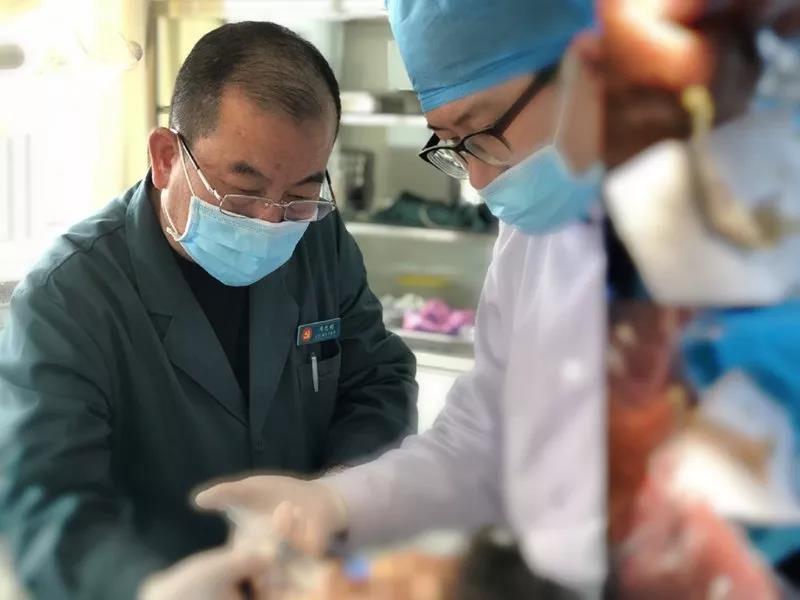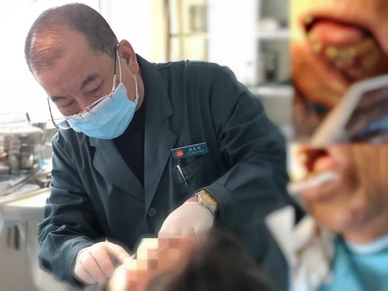 周主任經(jīng)驗豐富,很快確定了感染部位,在處理膿腫部位時,膿液迸濺到他身上,他像沒看到一樣,依然在耐心的安撫患者。患者右側(cè)咽旁間隙感染擴散到右頰間隙,左側(cè)前磨牙區(qū)不正規(guī)的鑲牙造成口內(nèi)竇道、口外皮瘺,左右兩側(cè)、腺源牙源混合多處感染很罕見、很復雜、也很嚴重。