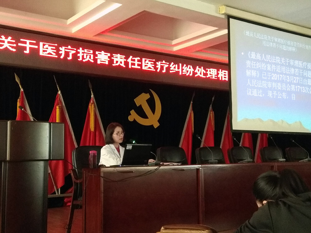 孟繁榮科長結(jié)合醫(yī)院醫(yī)療工作實際,講解了自2017年12月14日起施行的《最高人民法院關(guān)于審理醫(yī)療損害責任糾紛案件適用法律若干問題的解釋》、《中華人民共和國侵權(quán)責任法》第七章 醫(yī)療損害責任和國務(wù)院《醫(yī)療事故處理條例》相關(guān)內(nèi)容,就去年在我院發(fā)生的近50起糾紛事件的發(fā)生及處理過程進行了回顧性的交流。從中,孟繁榮科長圍繞醫(yī)療安全核心理念,深刻闡述了醫(yī)療糾紛風險防范的重要性,生動詳盡的闡釋了如何防范和處理醫(yī)療糾紛,如何營造醫(yī)患和諧的環(huán)境,并對實踐中常碰到的、容易引起醫(yī)患矛盾的環(huán)節(jié)和問題提出了有建設(shè)性的、可操作性的意見,同時結(jié)合醫(yī)患雙方不同的心理狀態(tài)進行分析,指導臨床更好的掌握醫(yī)患溝通的技巧。