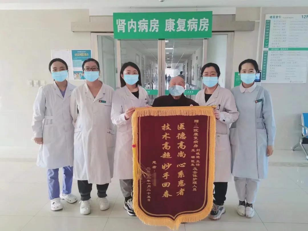 1月26日,我院康復(fù)病房患者方爺爺在家屬的陪同下,將一面寫(xiě)著“醫(yī)德高尚心系患者,技術(shù)高超妙手回春”的錦旗送到科室人員手中,感謝病房全體醫(yī)護(hù)人員的精心治療和周到服務(wù)。