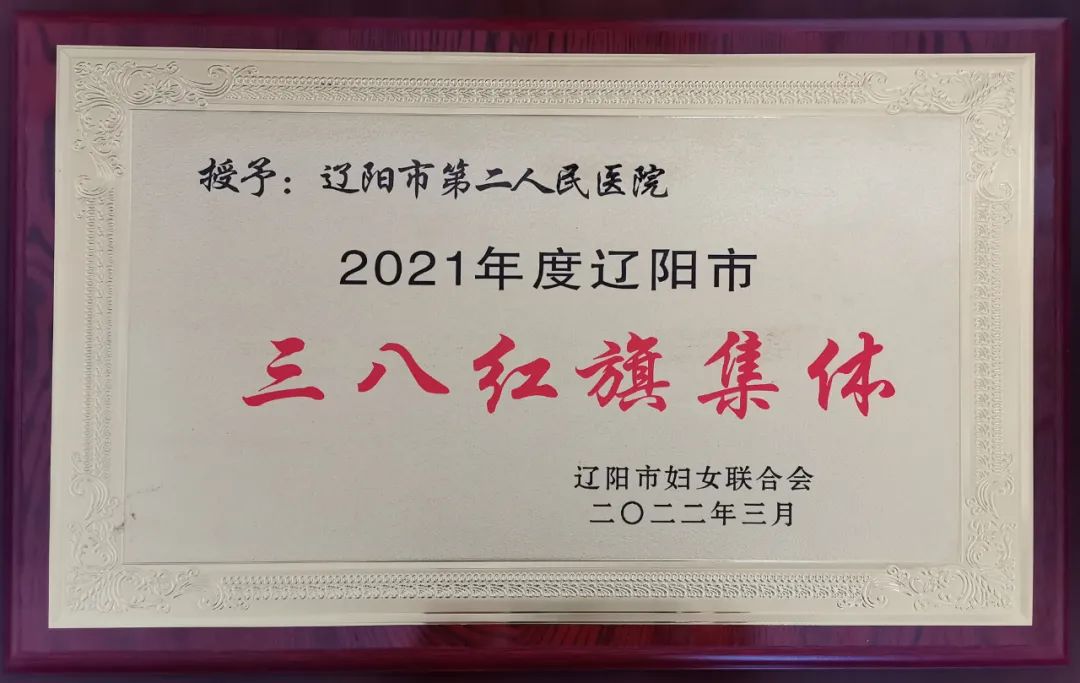 在第112個“三八”國際婦女節(jié)到來之際,我院被遼陽市婦女聯(lián)合會授予“2021年度遼陽市三八紅旗集體”榮譽。3月7日,市婦聯(lián)聯(lián)合市衛(wèi)生健康委召開遼陽市衛(wèi)生健康系統(tǒng)“三八紅旗手(集體)”“巾幗建功標兵(文明崗)”表彰大會,會上,院長徐穎代表醫(yī)院上臺領(lǐng)獎。