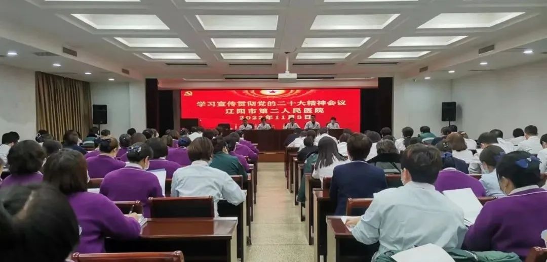 近日,遼陽(yáng)市二院認(rèn)真落實(shí)《中共中央關(guān)于認(rèn)真學(xué)習(xí)宣傳貫徹黨的二十大精神的決定》精神,把學(xué)習(xí)宣傳貫徹黨的二十大精神作為醫(yī)院當(dāng)前和今后一個(gè)時(shí)期的首要政治任務(wù),繼10月31日領(lǐng)導(dǎo)班子理論學(xué)習(xí)中心組專題學(xué)習(xí)之后,11月3日,召開(kāi)學(xué)習(xí)宣傳貫徹黨的二十大精神會(huì)議。會(huì)議傳達(dá)學(xué)習(xí)了黨的二十大精神,并就全院深入學(xué)習(xí)宣傳貫徹黨的二十大精神進(jìn)行了動(dòng)員部署。院黨委書(shū)記劉萍主持會(huì)議,醫(yī)院領(lǐng)導(dǎo)班子成員、中層以上干部及黨支部書(shū)記參加會(huì)議。