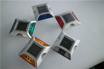 太陽能道釘又叫太陽能突起路標(biāo),是道路交通設(shè)施的一種新型主動發(fā)光警示產(chǎn)品,它以太陽能電池板為充電元器件,電池或電容為儲能元器件,采用LED發(fā)光或結(jié)合反光片發(fā)光。主要設(shè)置于路邊緣石,快慢車道分隔道上,一般同標(biāo)線結(jié)合使用。