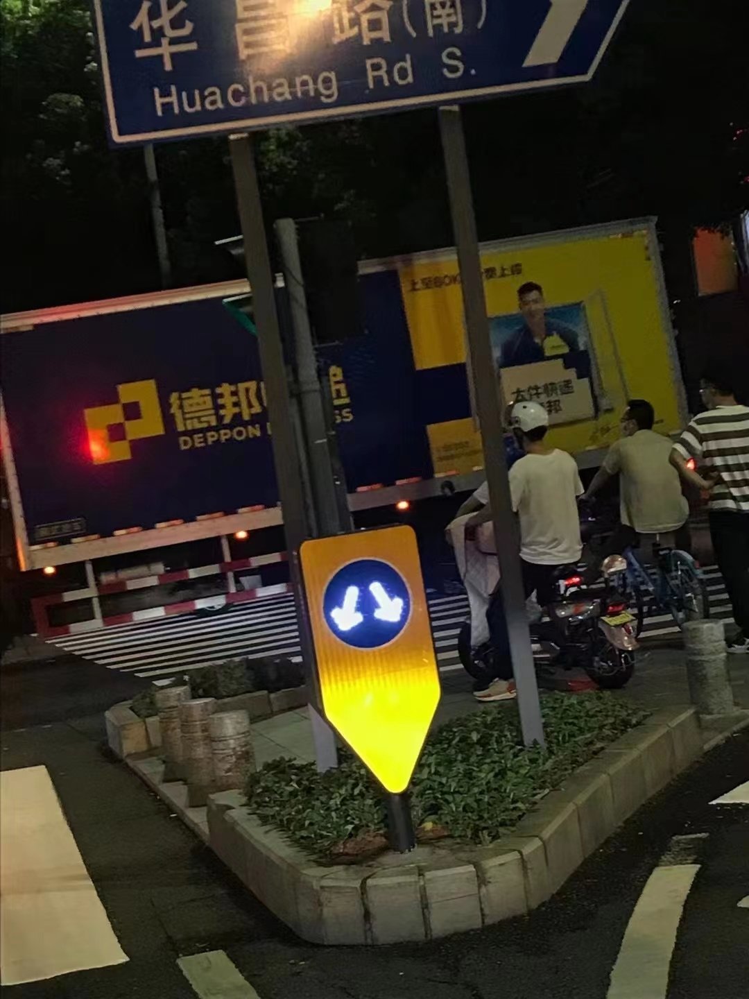反光膜顏色:黃色底膜藍色圓圈白箭頭